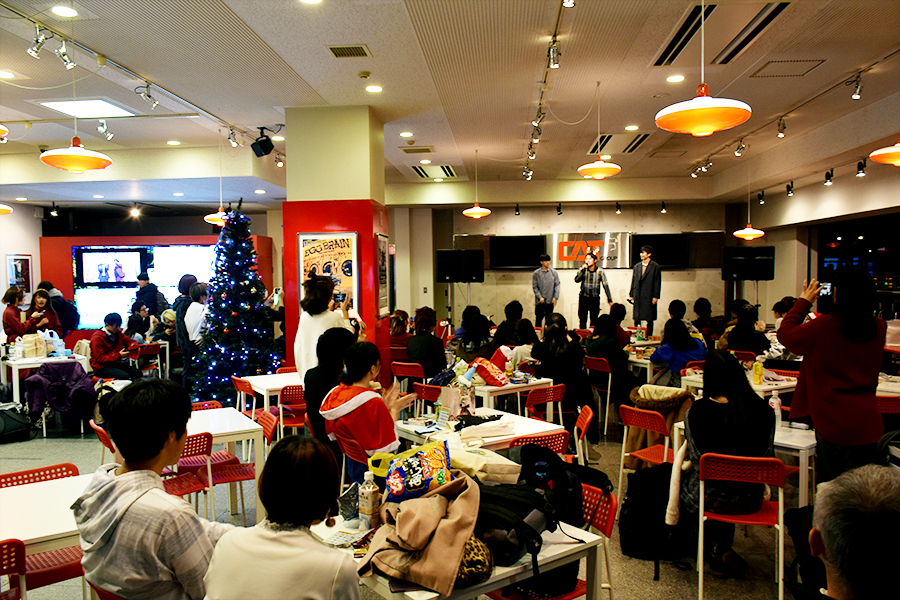 アニカレ恒例の「3丁目ライブ」!その第4回目が開催されました!コースに関係なく誰でも出演でき、毎回大盛り上りのイベントです。今回は時期的にクリスマスにちなんだ演出やファッション多く、年内最後のライブということもあって歌う方も観る方もノリノリの、とても楽しいイベントとなりました!