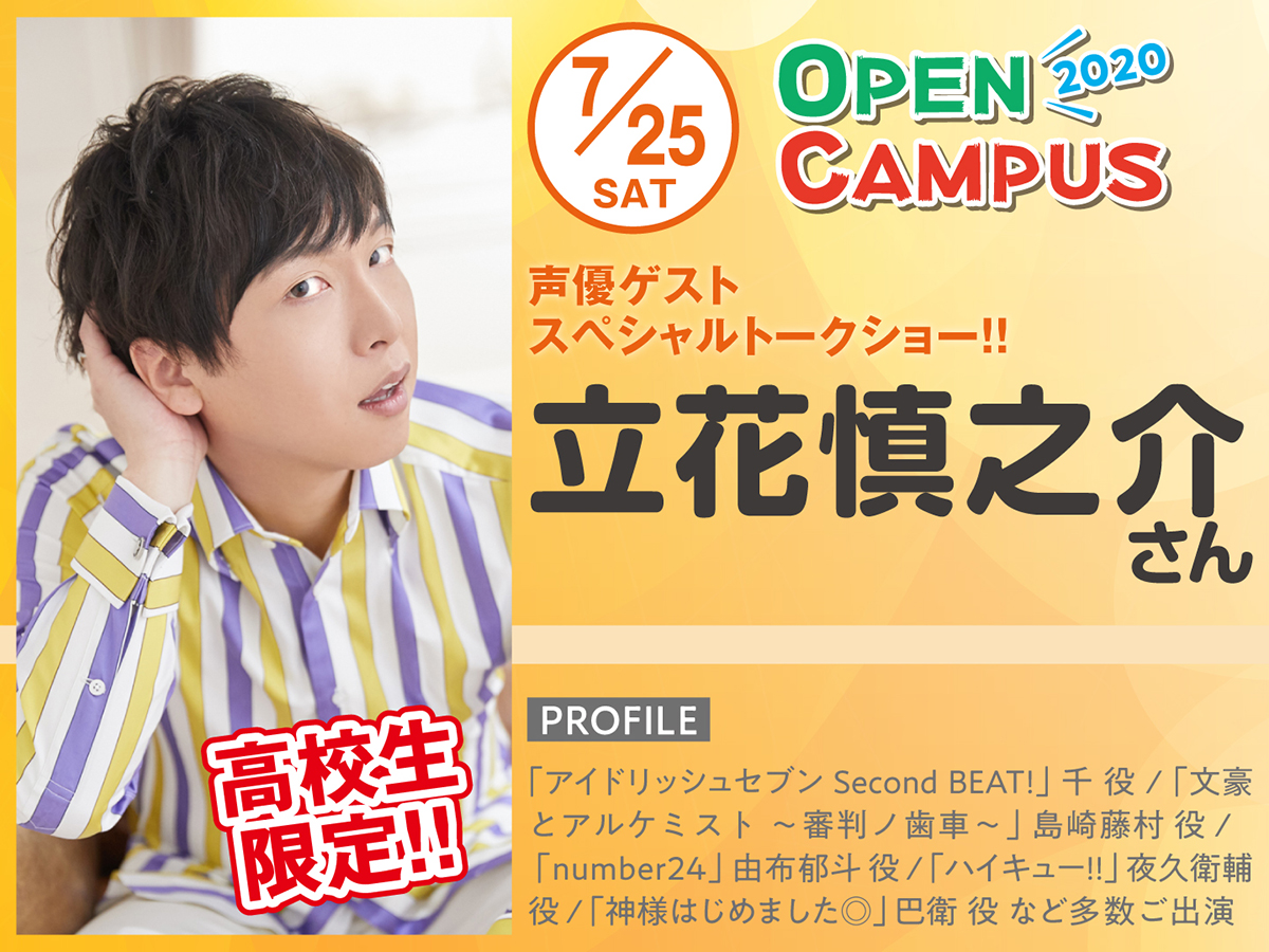 「アイドリッシュセブン Second BEAT!」千役、「文豪とアルケミスト 〜審判ノ歯車〜」島崎藤村役などでご活躍中の声優 立花慎之介さんが来校!!