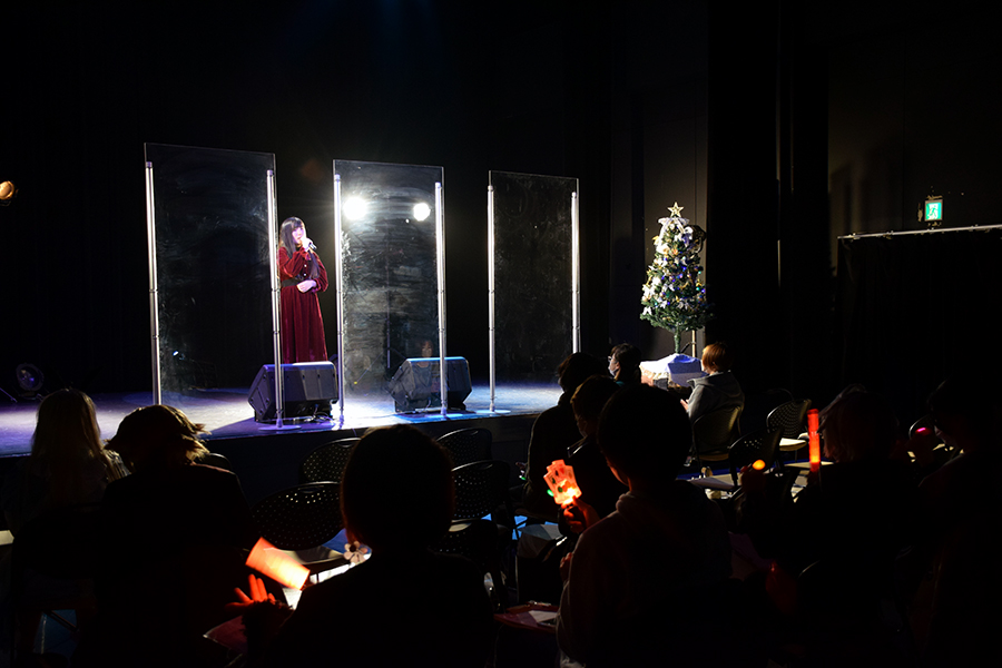 クリスマス直前ということで「プリクリスマスライブ」と銘打たれた今回のイベント、普段の実習の成果を本格的なホールを使用し、音響や照明スタッフの協力のもとライブ形式で披露します。
