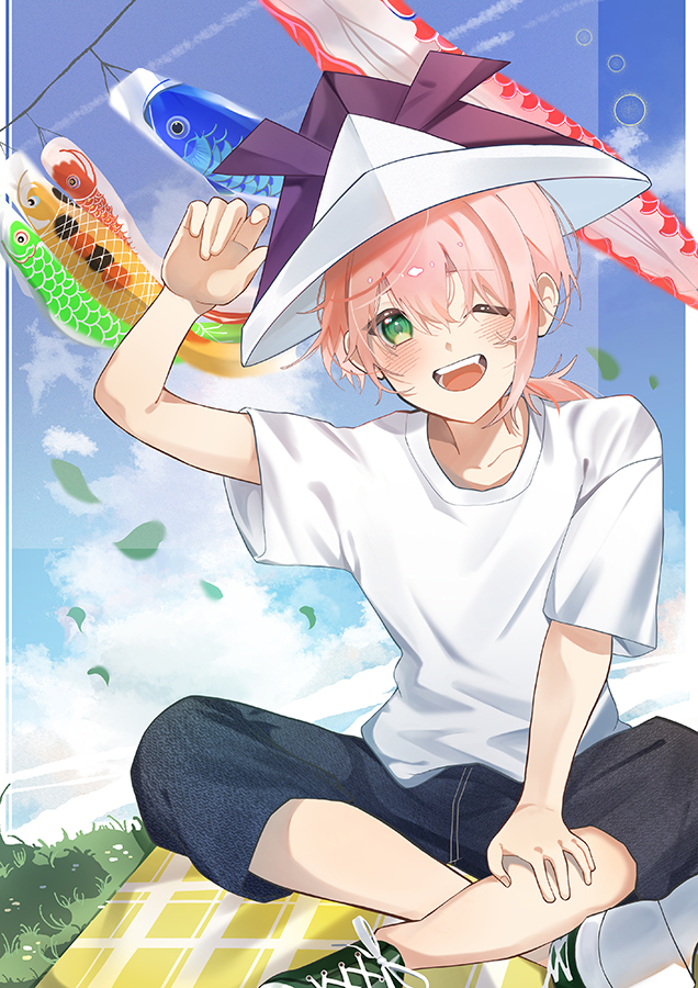 鯉のぼりの勇壮に空を泳ぐ様子がよく描けています。