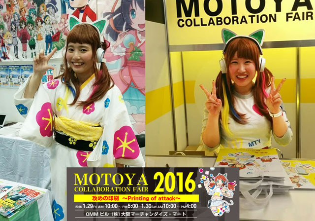 1月29日(金)~30日(土)の二日間、天満橋のOMMビルで開催された株式会社モトヤのコラボレーションフェアに、声優学科アニソン声優コースの茅野みずほさんと石井聖奈さんがイメージキャラクター「琴音愛」のコスプレをして、受付とMCのお手伝いをして来ました。