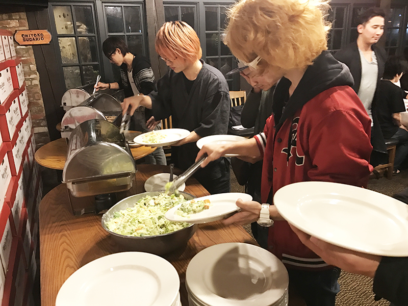 初日ロサンゼルスは、ハリウッド観光。映画俳優やミュージシャンの手形や足形がある「チャイニーズシアター」、そしてレッドカーペットで有名な「ドルビーシアター」も見学しました。 夕食は、3校合同でビュッフェ形式の交流食事会を行いました。