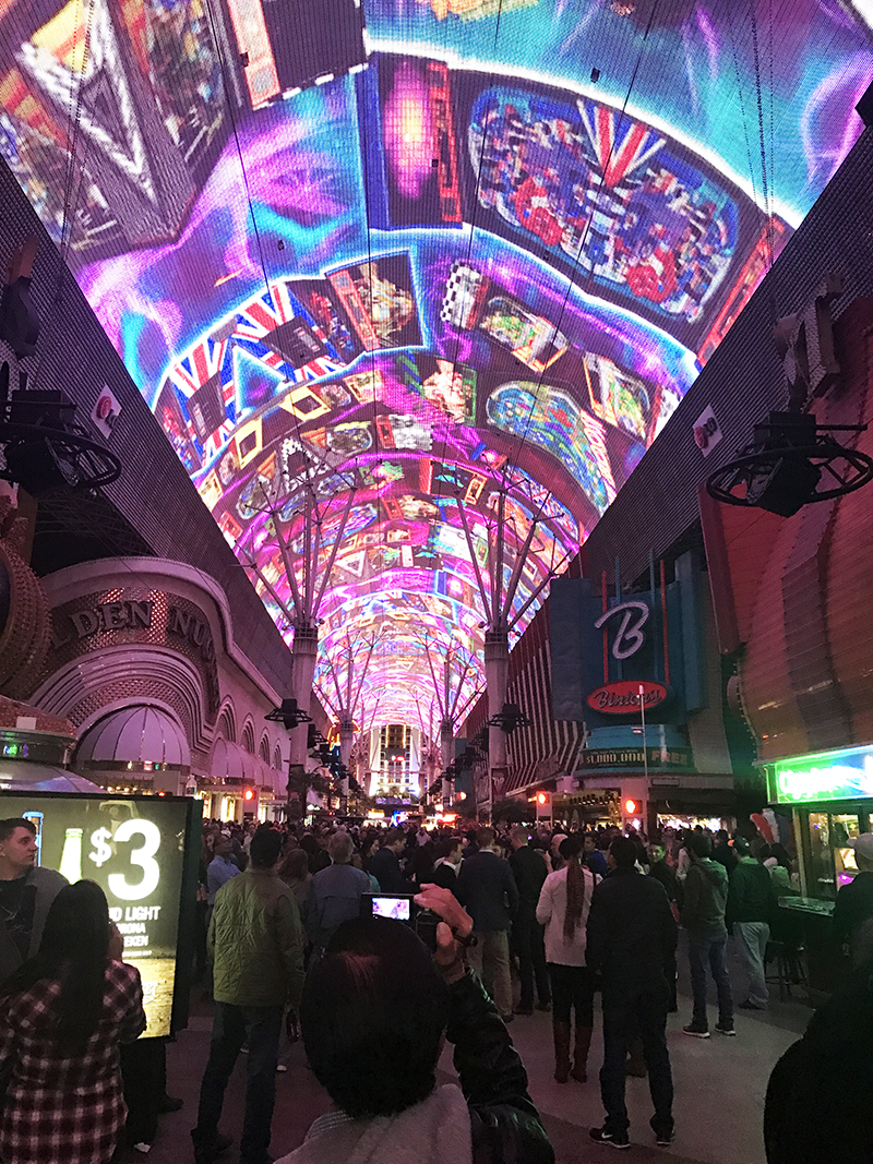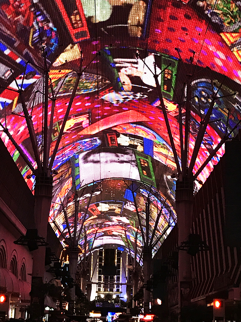 ロサンゼルス最終日は、西海岸で一番有名なビーチ「サンタモニカ」を観光してからラスベガスへの移動。ラスベガス到着後は、地上350mの高さの「ストラスフィアタワー」の最上階まで上り 超高層でのアトラクションを楽しんだ後、フィリーモントストリートで、4ブロック分のアーケードの天井をスクリーン(高さ約30m、全長450m、12000個のLEDを使用)にした 光と音のスペクタクルショーを見学。圧巻の迫力でした!