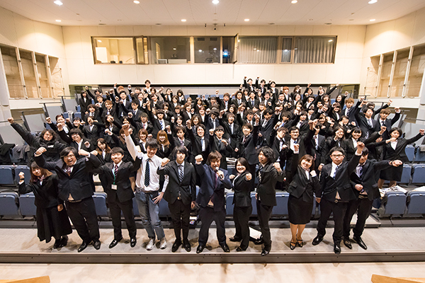 最後は、毎年のお決まり!!これからの就職活動に向けて全員で気合いを入れてセミナーは終了。